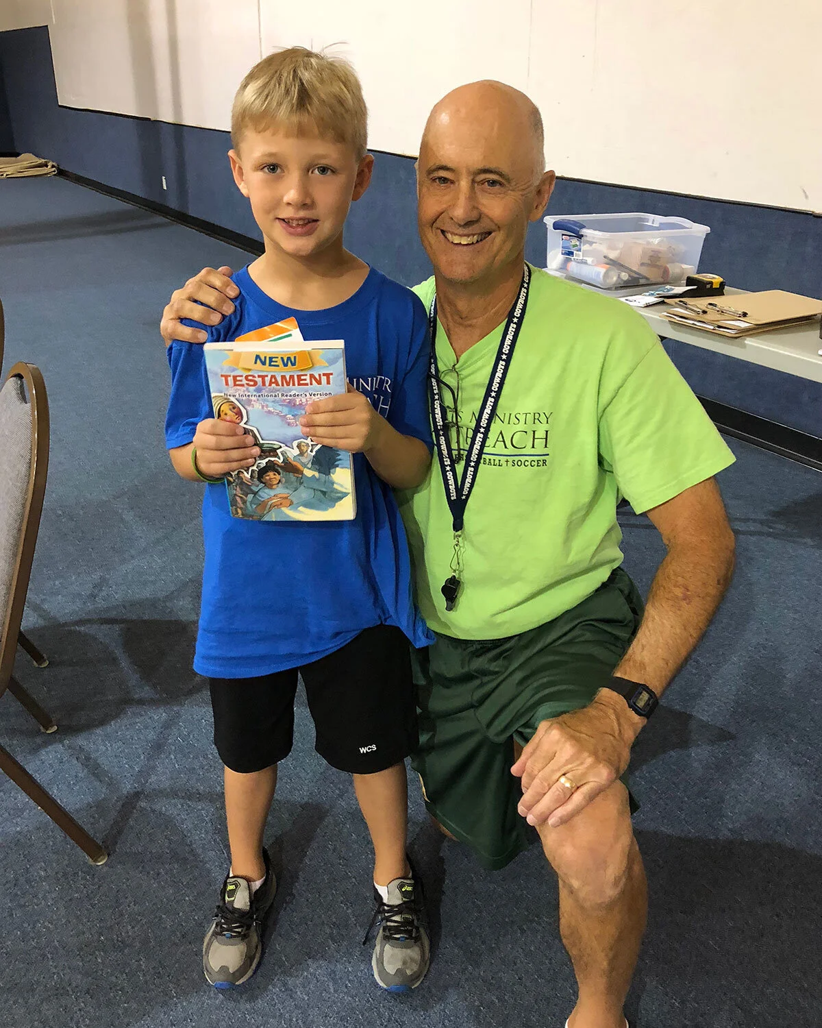 A camp shirt, a basketball or soccer ball, and a Bible for every camper